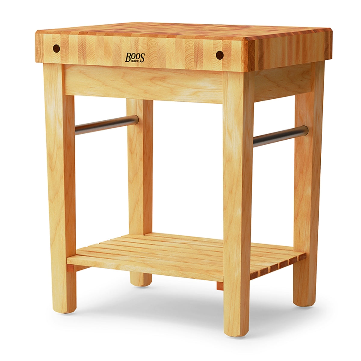 Keep the maple top conditioned to prevent drying or cracking. We recommend the John Boos Mystery Oil & Cream Care Package. For step‑by‑step guidance, see our Butcher Block Care Guide.